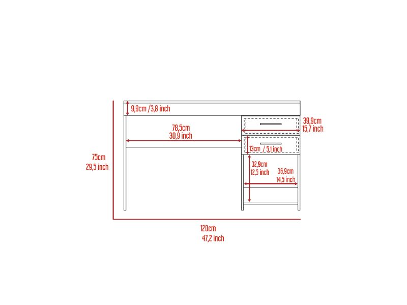 The Maui Two-Drawer Desk is perfect for small spaces. It's complete and compact with two drawers and an open compartment, making it the ideal desk for your home office or bedroom. The sleek and simple design makes it easy to match any existing furniture, and the two drawers provide ample storage space for all of your office supplies. Whether you're looking for a new desk for your home office or need a designated area to get work done, the Maui Two Drawer Desk is the perfect solution. Work surface (47.2'' W X 17.9''D)Designed with elegant smokey oak, black wengue, and light gray manufactured wood finish.