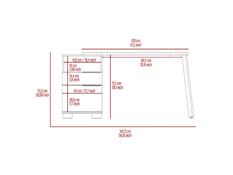 Oslo Writing Desk is a perfect choice. This gorgeous desk features a sleek design with two legs, an ample work surface (56,10'' W X 23,62'' D), one open shelf, and one great one-door cabinet. The open shelf is perfect for storing your items and keeping your working area clean and clutter-free. The one-door cabinet provides plenty of storage space for your essential office supplies. The sleek and stylish design of the Oslo Writing Desk will elevate the look of any room. Designed with elegant mahogany manufactured wood finish.