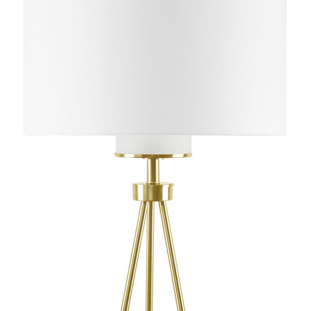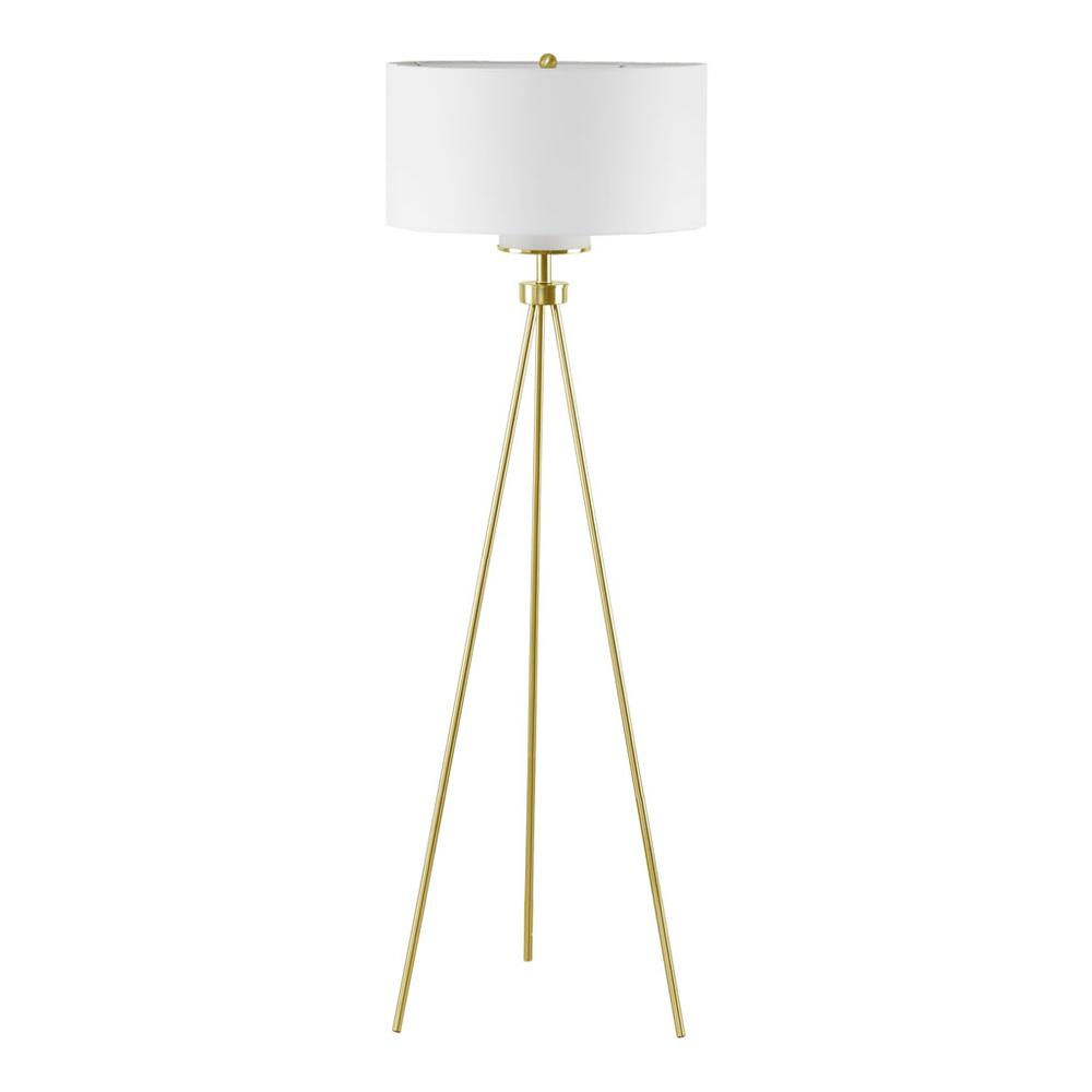 • Tripod lamp in gold metal finish drum shade • Shade dimension 20 inches in diameter • Lamp stands 65 inches in height • Electric cord length is 96 inches • Limited 2-year warranty