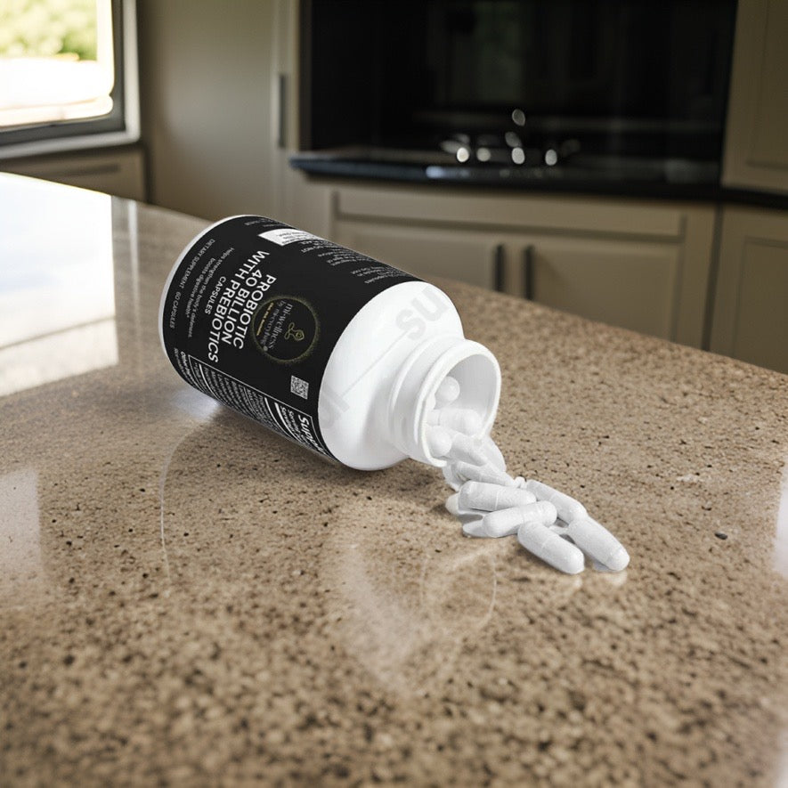 Ingredients: Proprietary Blend of Probiotic Bacteria: MAKTREK® (Bi-Pass Technology), Lactobacillus Acidophilus, Bifidobacterium Lactis, Lactobacillus Plantarum, Lactobacillus Paracasei, Marine Polysaccharide Complex, Fructooligosaccharide, Cellulose (vegetable capsule), Rice maltodextrin, L-Leucine.