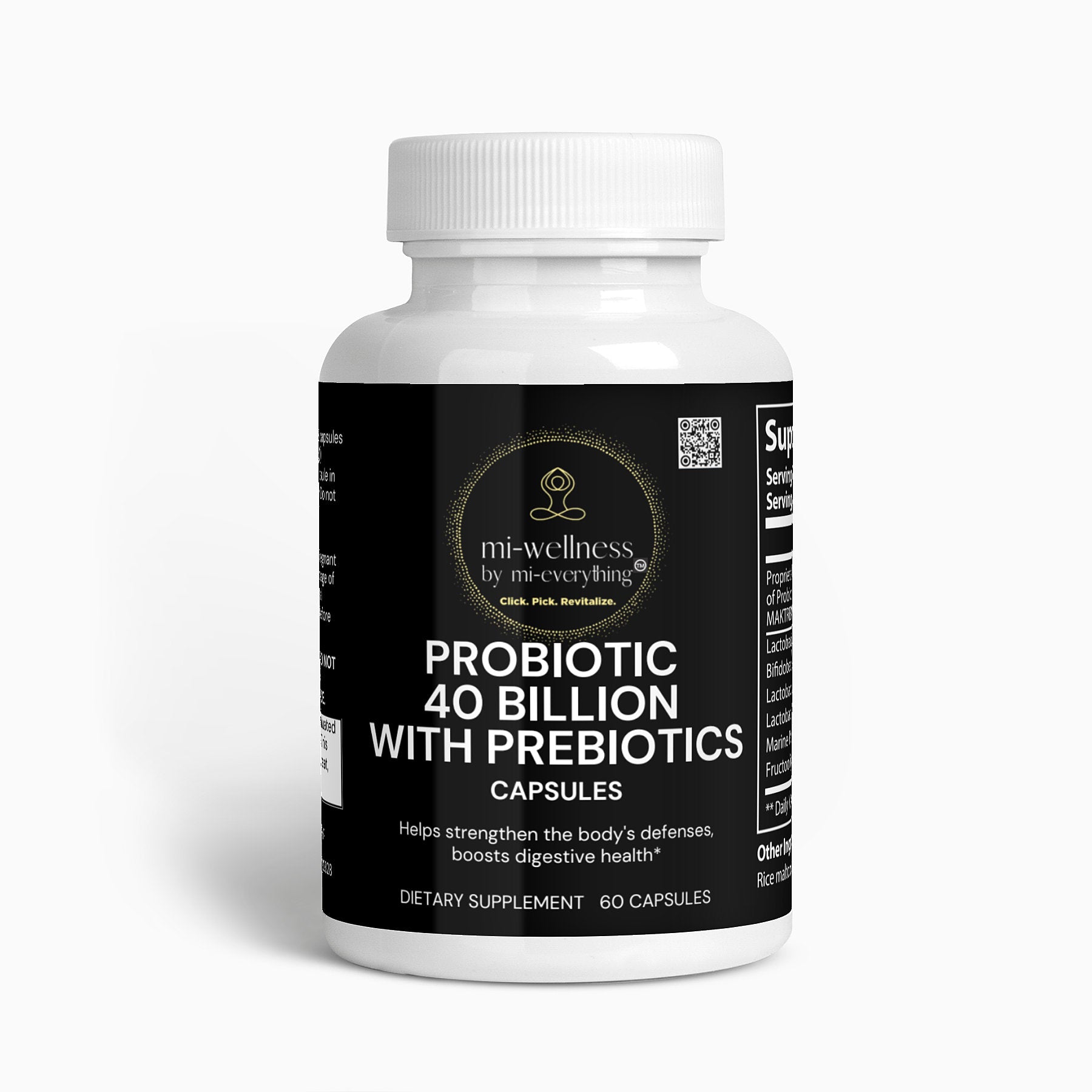 Probiotic 40 Billion with Prebiotics is a blend of four probiotic strains: Lactobacillus Acidophilus, Bifidobacterium Lactis, Lactobacillus Plantarum, and Lactobacillus Paracasei.