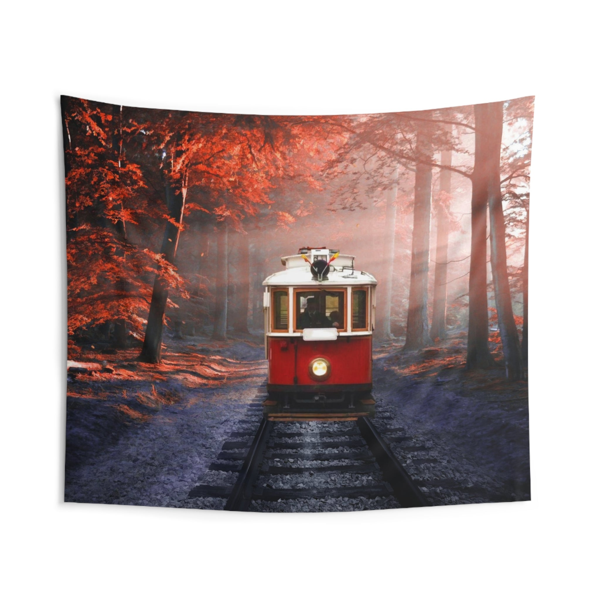 Red Tram in Forest Tapestry