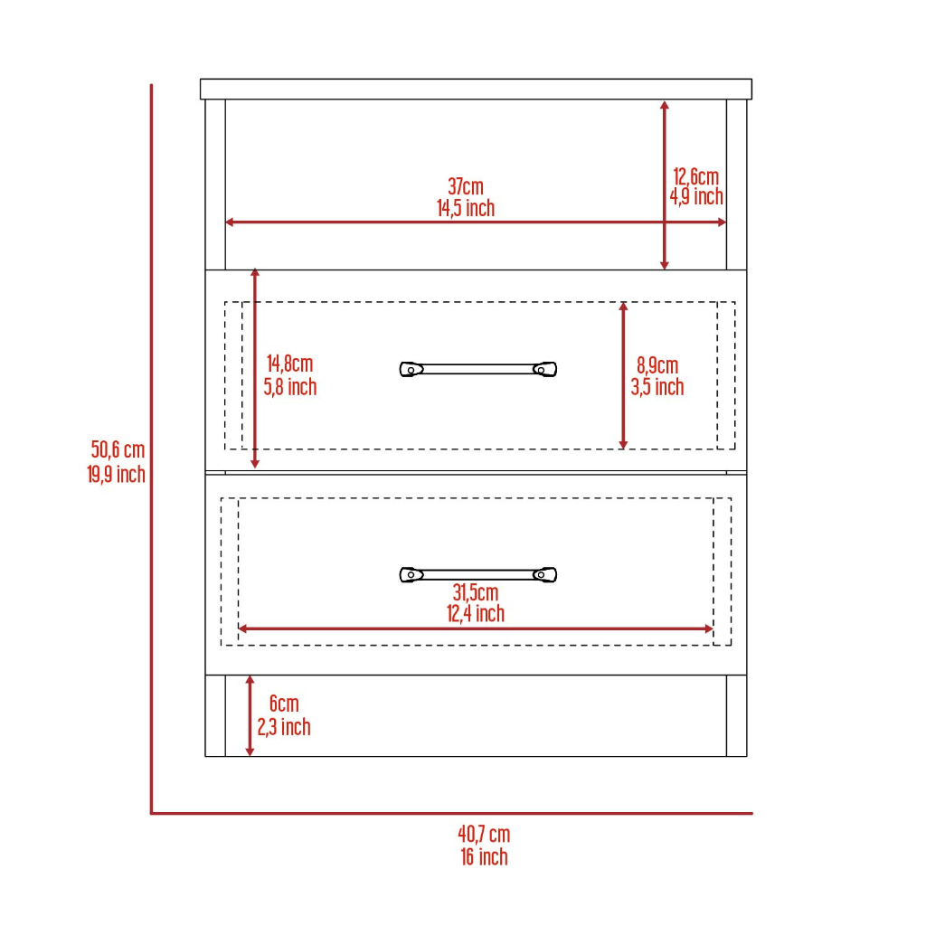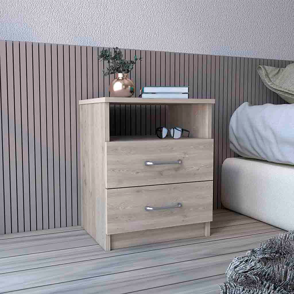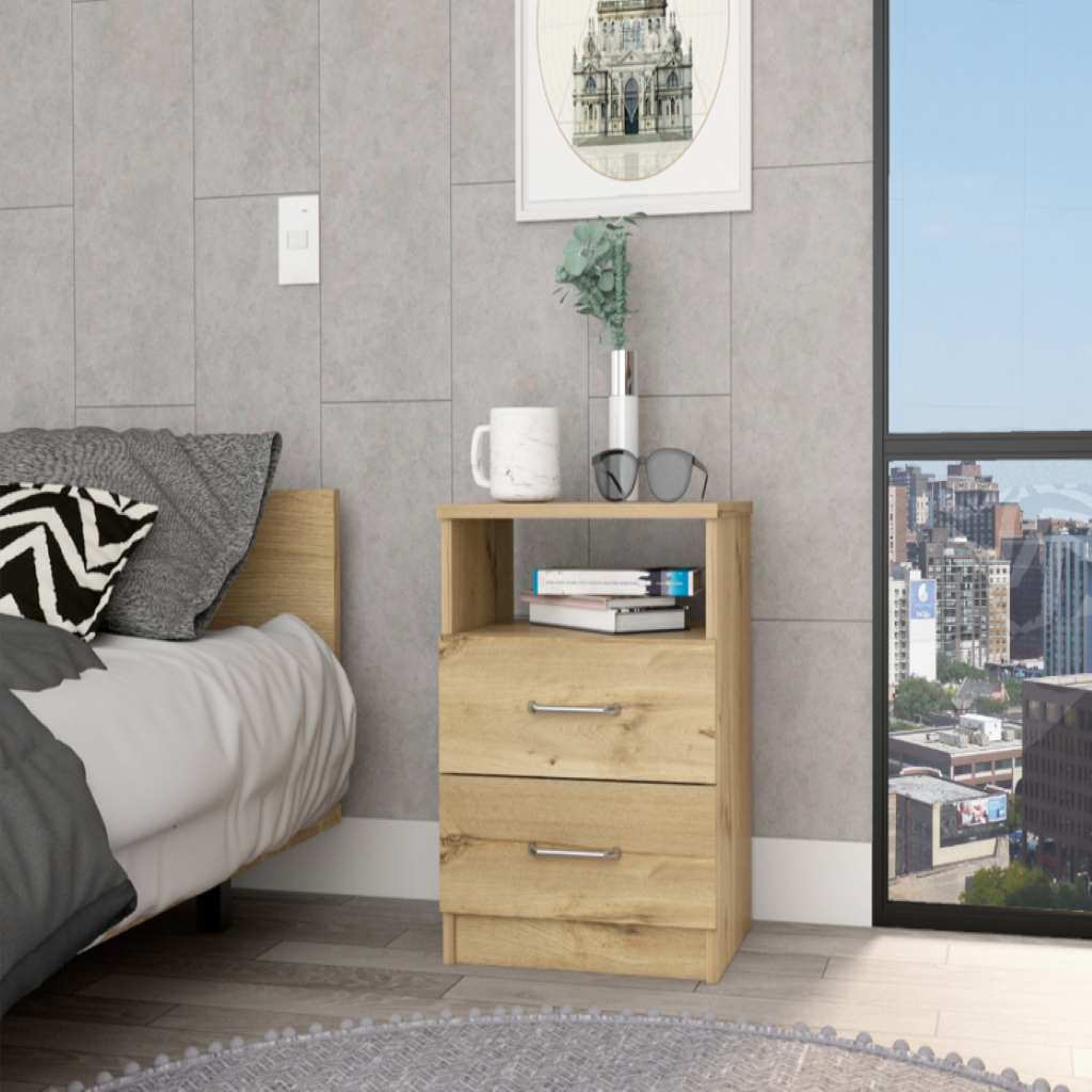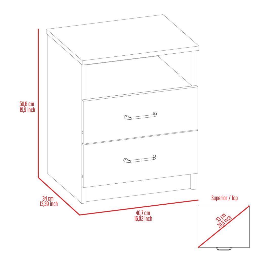 Salento Nightstand, Two Drawers, One Shelf, Superior Top