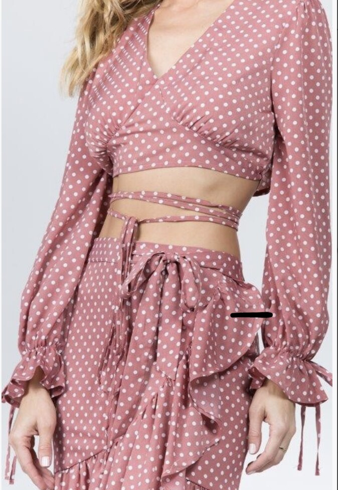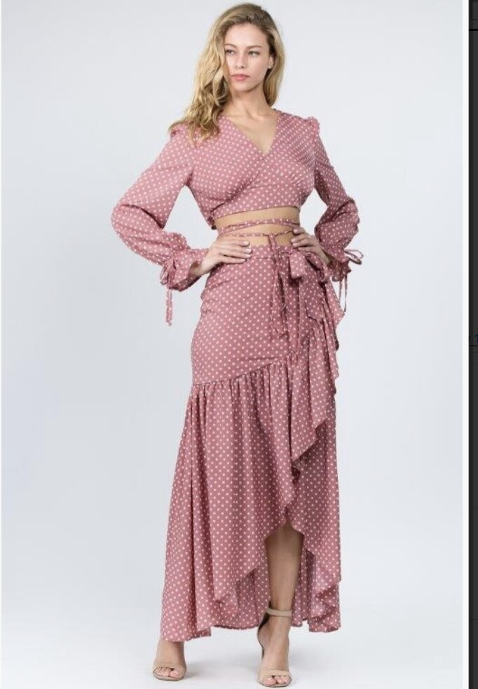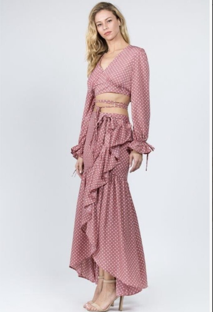 Scarlet Polka Dot Top and Skirt Set Dusty Pink