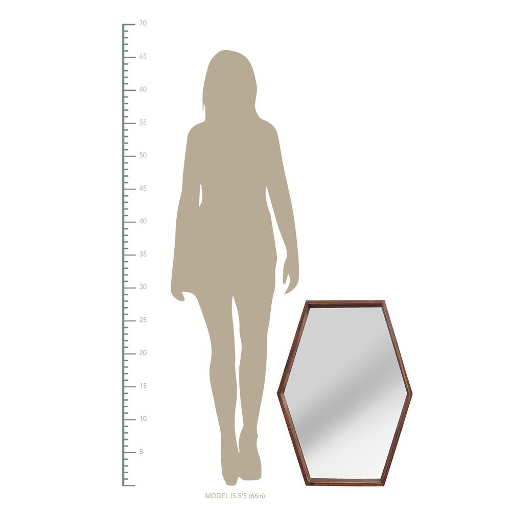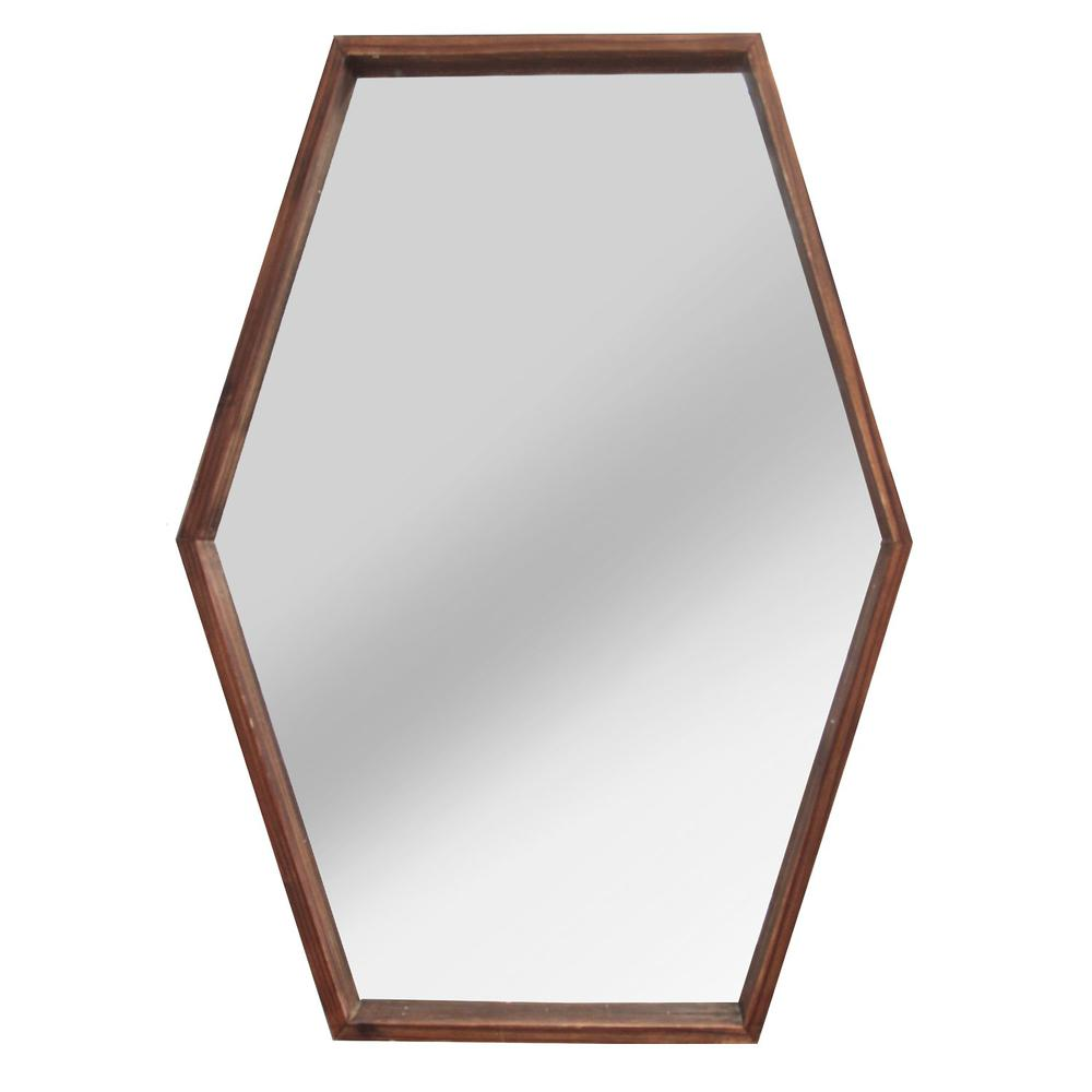 The JoJo Wood Mirror by Stratton Home Decor is a perfect accent in any room. The handcrafted mirror boasts a decorative frame in a rich dark natural color that brings depth and modern style to your home. Its chic style instantly dresses up any plain wall in a bedroom, hallway, or any living area. Its wonderful hexagon shape measures 20.47" L x 1.97" W x 27.95" H overall, and fits perfectly in most any space. Item is handmade and Painted by skilled artisans. Product may have some variances in comparison to photo shown.