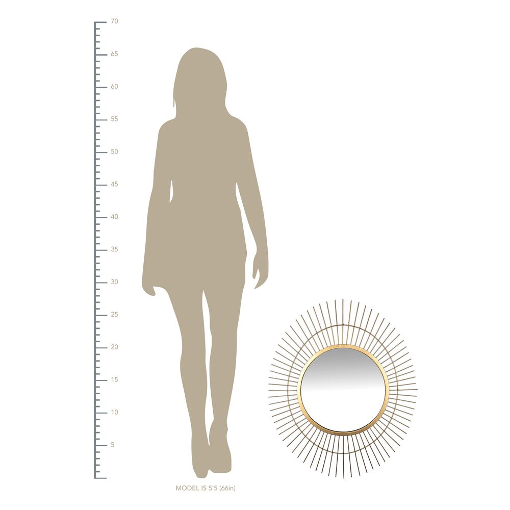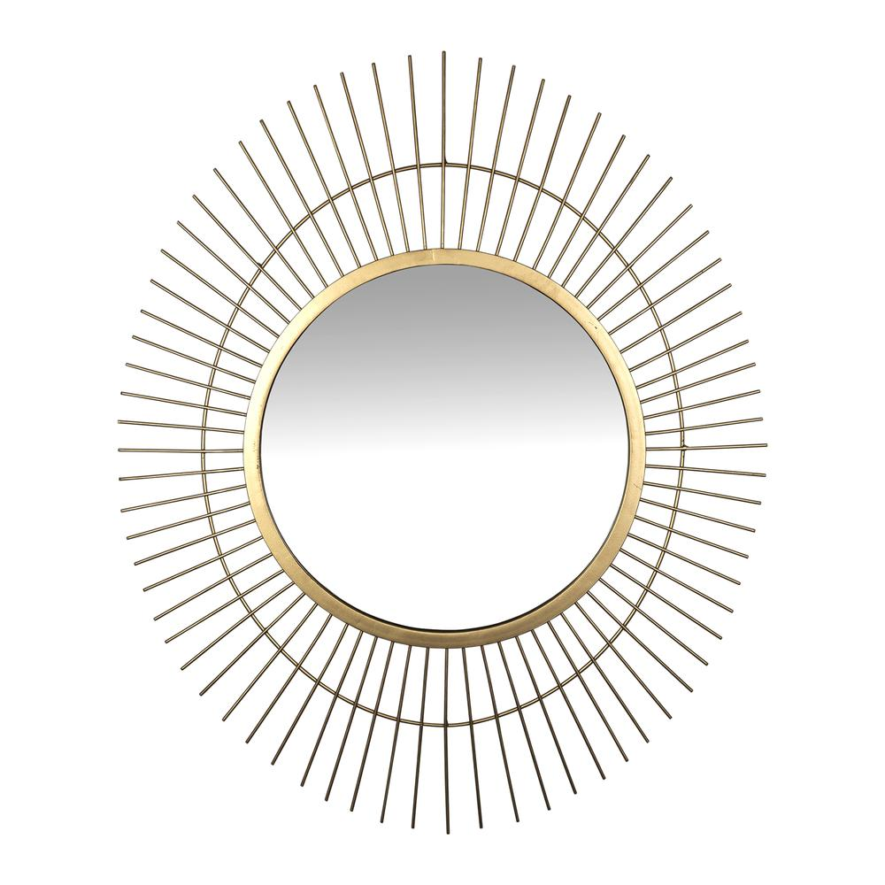 Liven up your home with this handcrafted wall piece. This wall mirror features a round center that is surrounded by decorative spokes to create a unique oval shape. The whole piece has a matte gold finish that makes it stand out in your space.