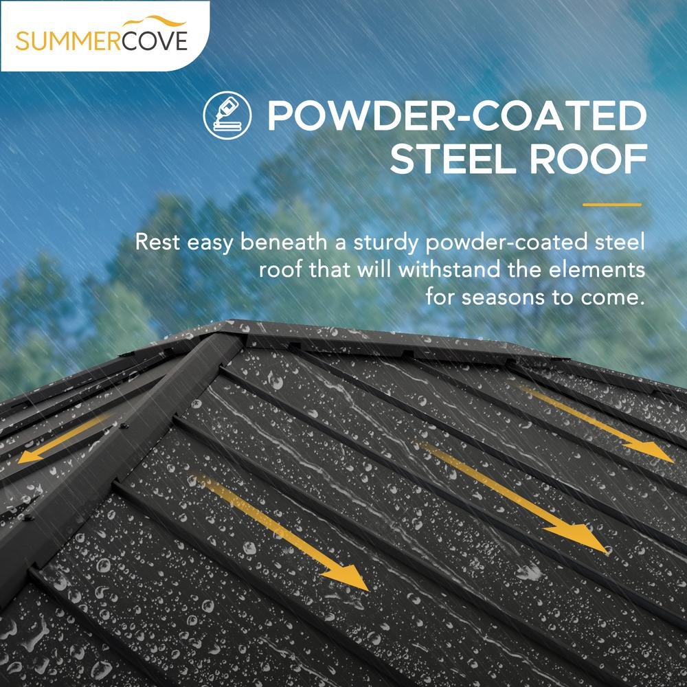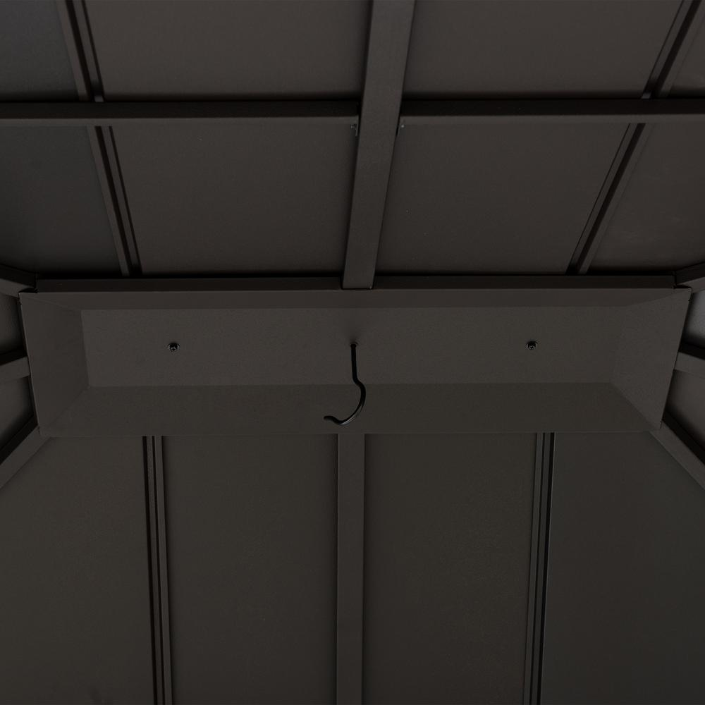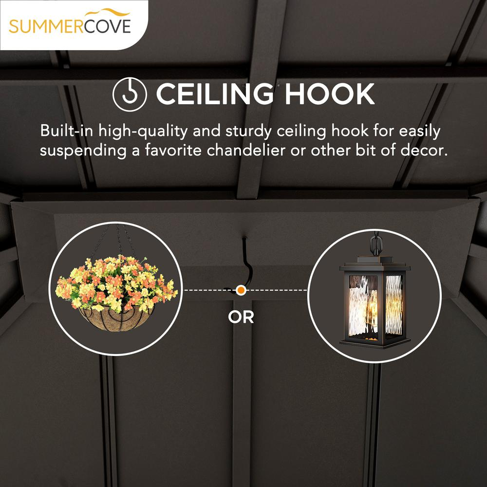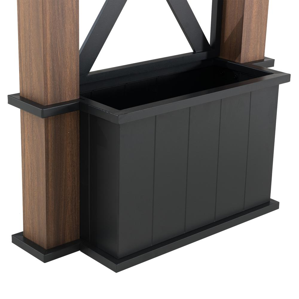Expand your living space by bringing the indoors outside and create an end-of-the-day oasis that’s the perfect spot for entertaining family and friends. Create the perfect outdoor setting for any time of the year. Spend all four seasons enjoying a covered spot outdoors under the natural wood-looking hardtop gazebo made of rust-proof aluminum frame and galvanized steel roof. The four built-in aluminum planters are the perfect place to add greenery or florals during warmer months for color. Use them to hold dried corn stalks or wheat bundles for some autumnal decor. Set the mood by suspending a chandelier from the incorporated ceiling hook for additional functional light and high design. With straightforward, easy-to-follow assembly instructions you’ll soon be relaxing in your favorite new outdoor living space, and for years to come