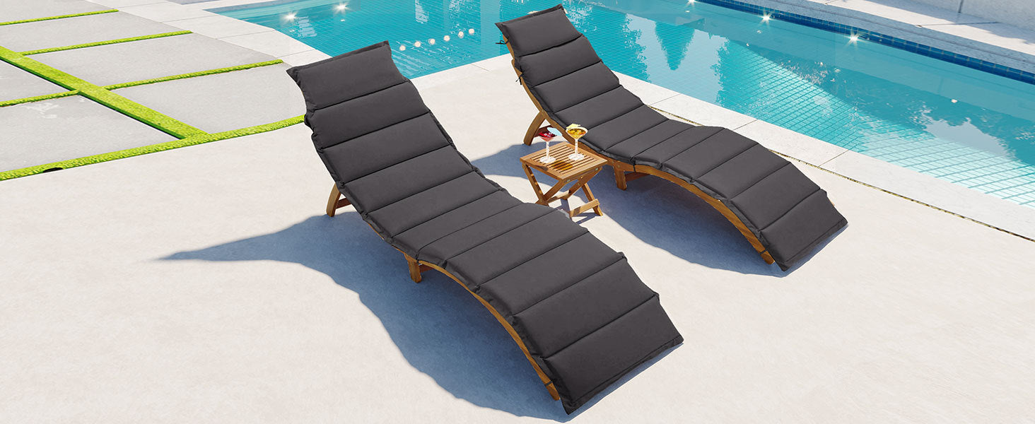 If you don't have enough storage space in your patio, this chaise lounge set will be a good choice. Come with 2 lounge chairs and 1 tea table, all of them can be folded and portable for storage and movement. Life should be comfortable. Just with several simple steps then you can enjoy your quality time with your loved one in the beautiful summer day!