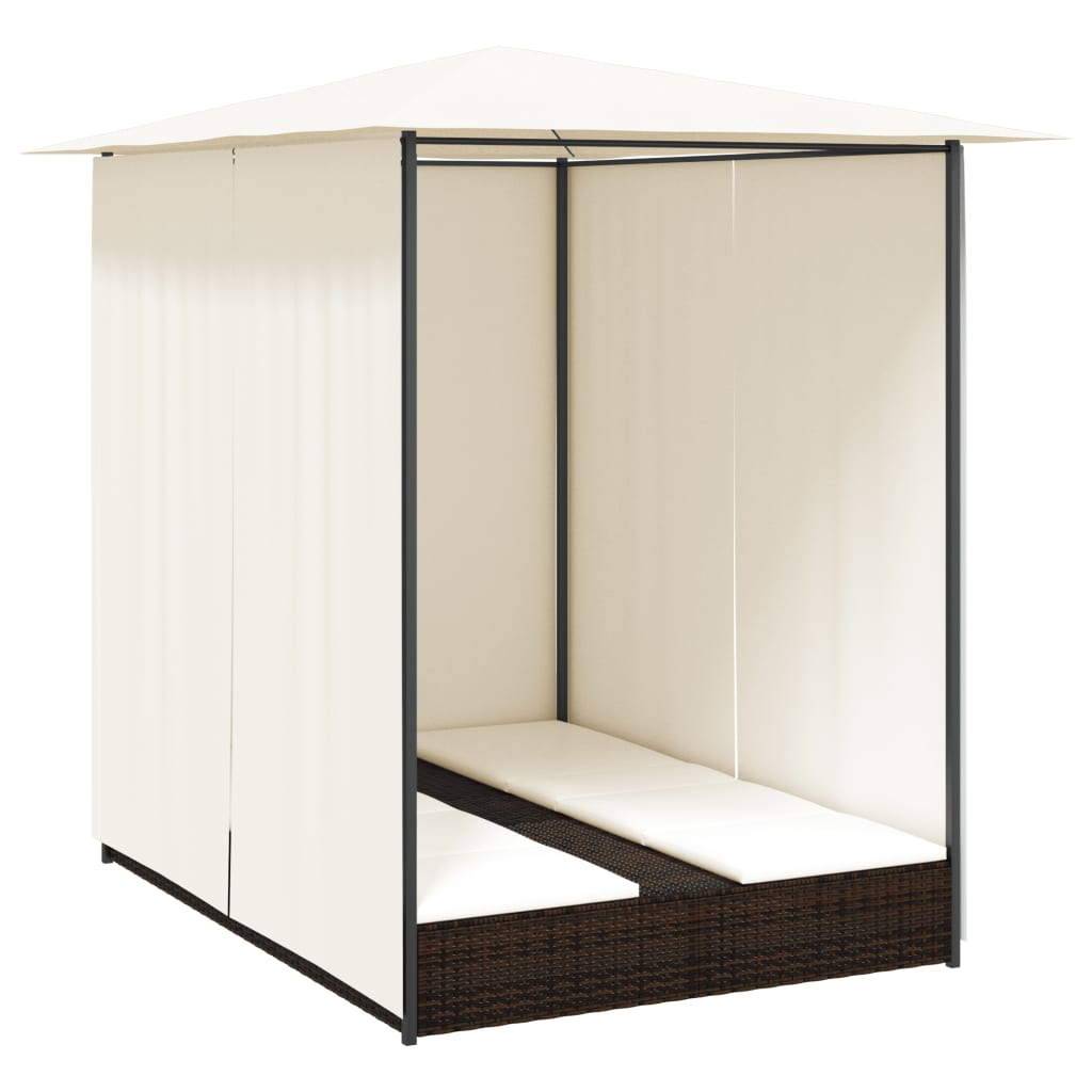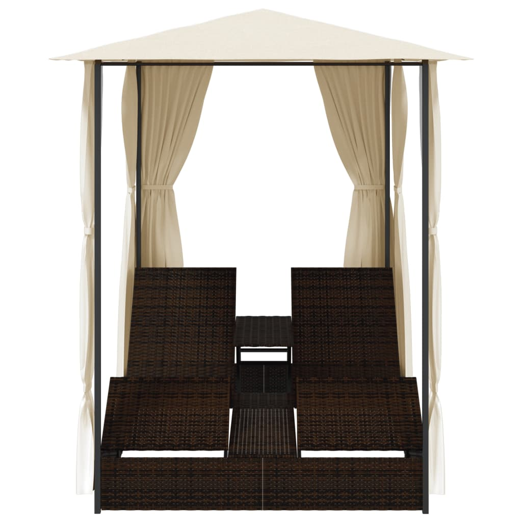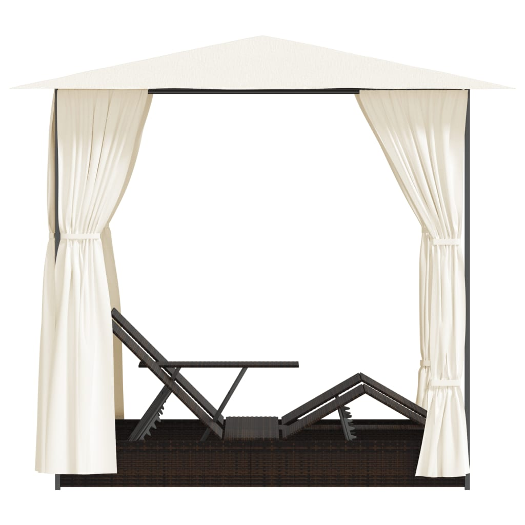 vidaXL Double Sun Lounger with Curtains Poly Rattan Brown
