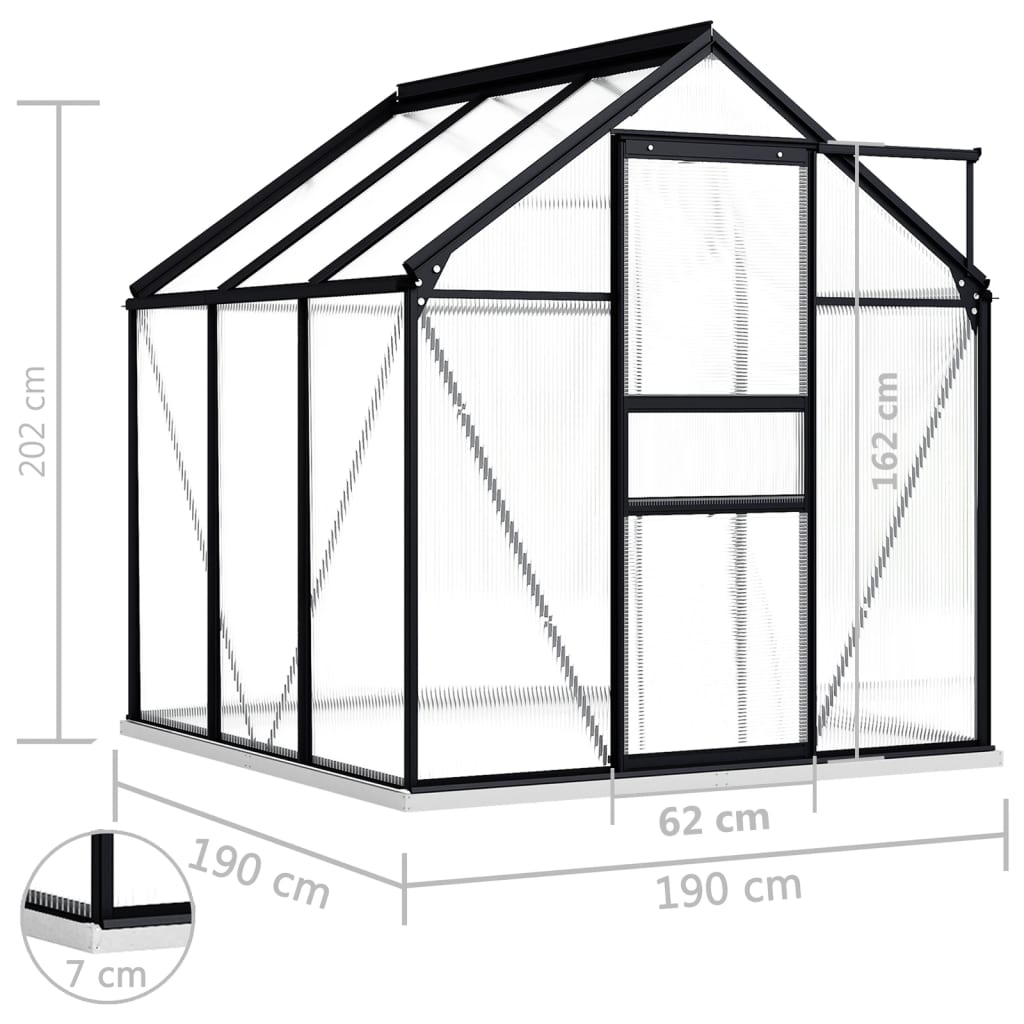 vidaXL Greenhouse with Base Frame Anthracite Aluminum 38.9 ft²