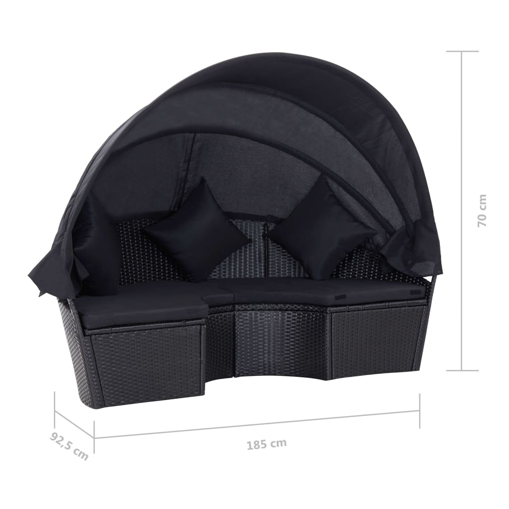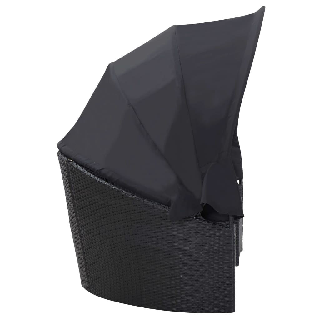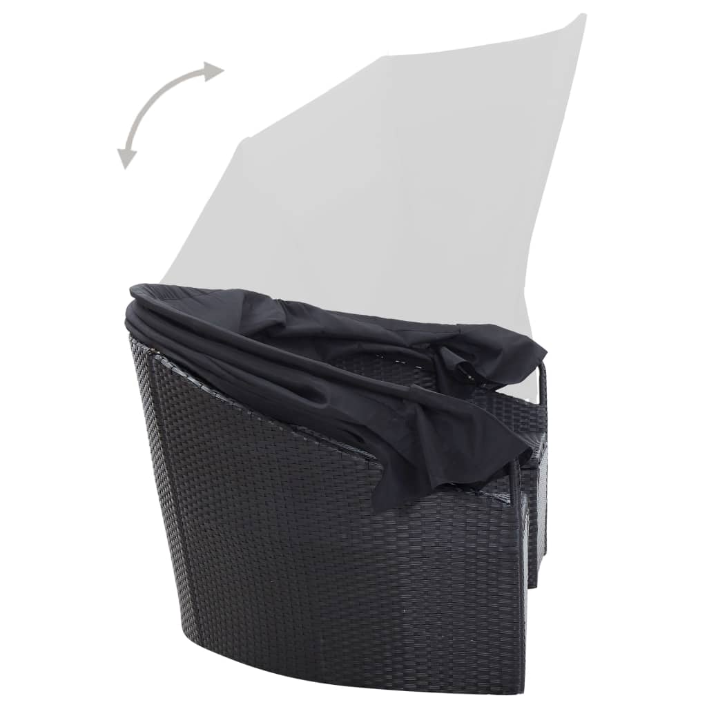 vidaXL Patio Lounge Bed with Canopy Poly Rattan Black